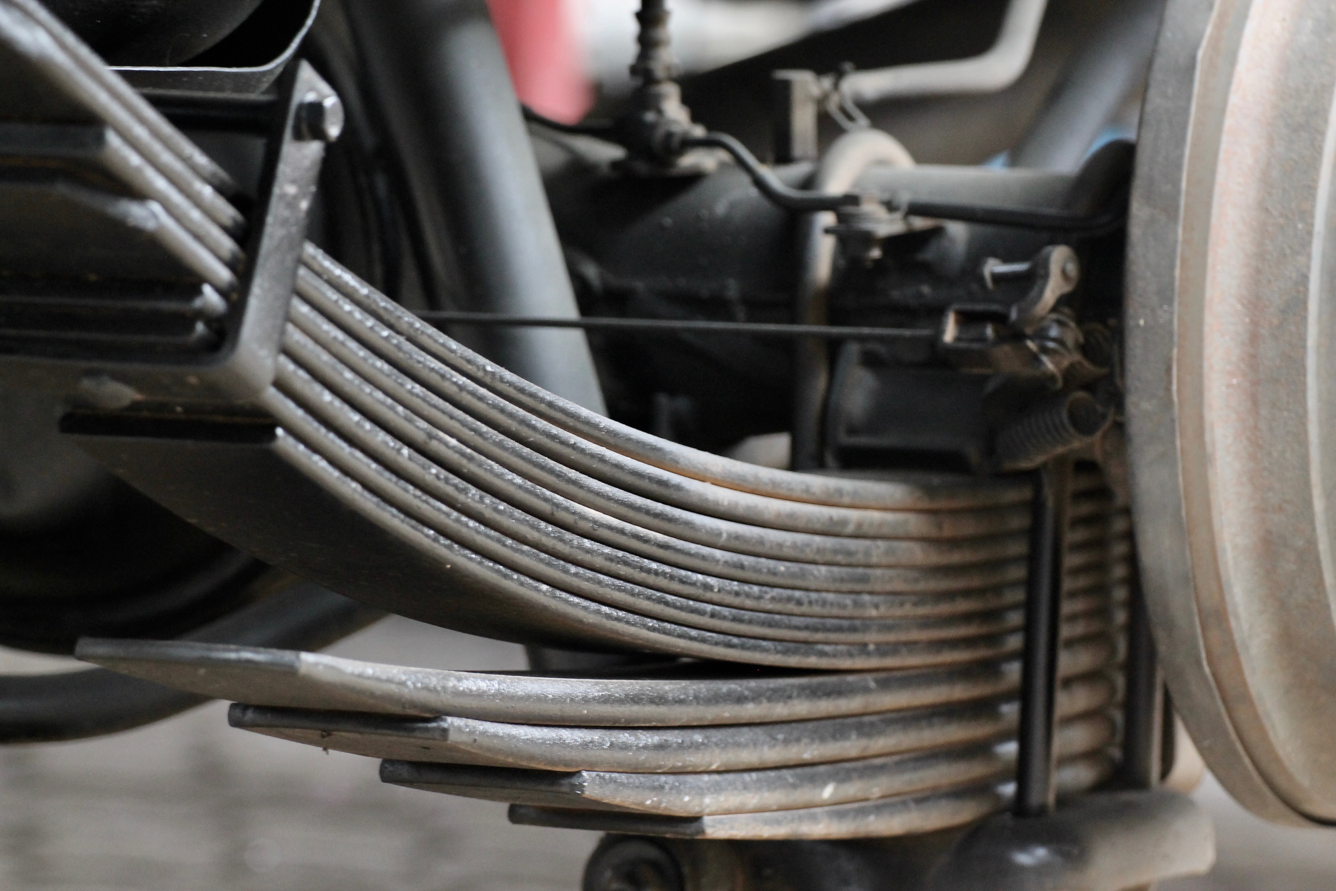 Brake performance and stability, suspension wear, bushings, steering components, wheel-end issues, and roadworthiness checks.